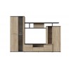 Современная гостиная с небольшой зоной хранения за глухими створками и зоной для хранения посуды.