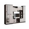 Гостиная Флора ЛДСП – довольно большая современная гостиная шириной 2700 мм. Есть шкаф для одежды и пенал для белья, два небольших выдвижных ящика и достаточно полок.