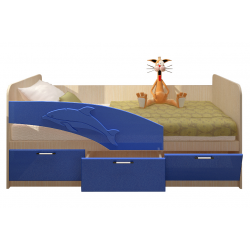 Удобная детская кровать. Модель обладает съемным бортом и вместительными ящиками. Модель является витринным образцом.