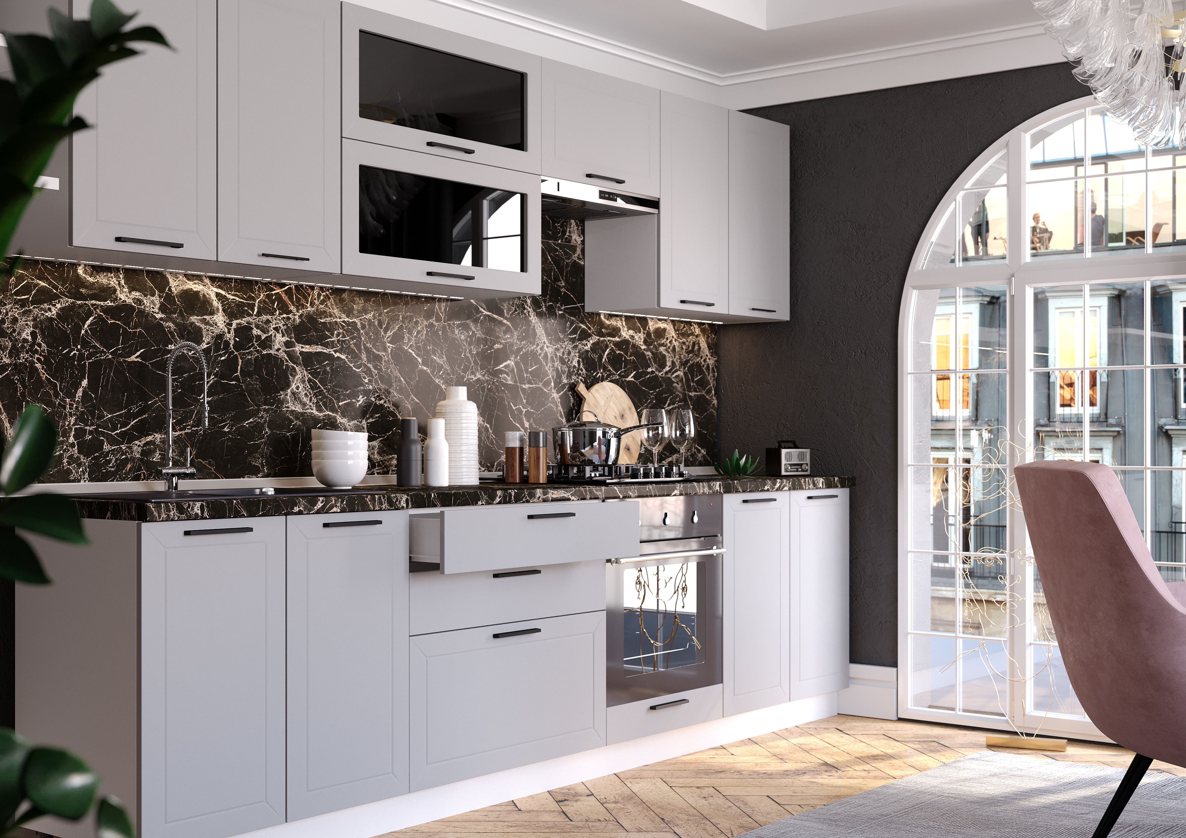 Цвет фасада на выбор Айленд Силк/Гейнсборо Силк/Маренго Силк.